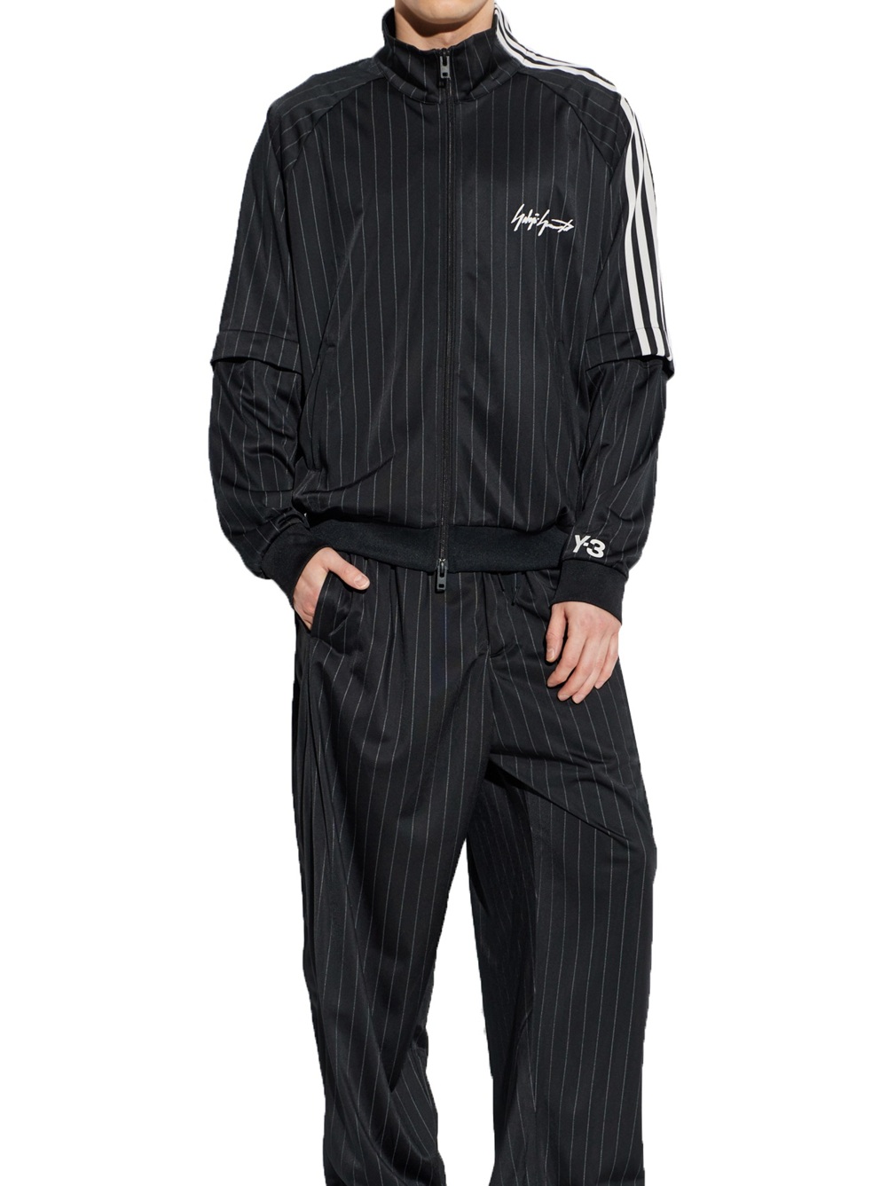 ADIDAS Y-3 Felpe (coll.: P26) - ref: KQ9719 BLACK/CHAPEA 100% pet-rec   La felpa con collo alto dell'esclusiva collezione Y-3 Yohji Yamamoto è una testimonianza dell'eccezionale virtuosismo del design, dove lo stile avant-garde incontra l'eleganza senza tempo. Il suggestivo colore nero si abbina perfettamente al delicato motivo a sottili righe verticali, che richiamano la tradizione classica della moda maschile.