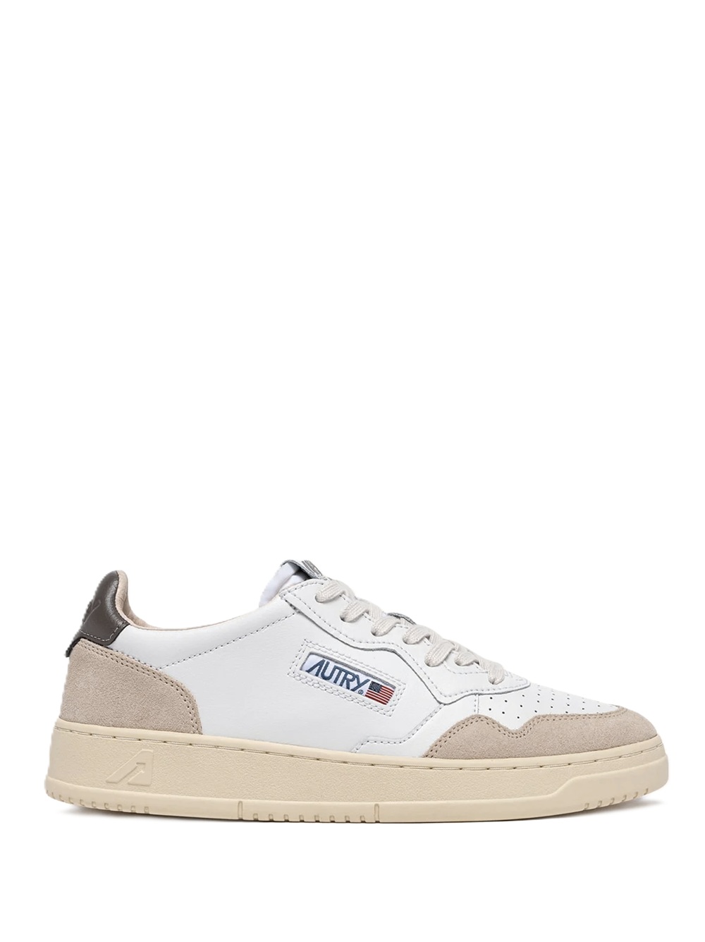 AUTRY SNEAKERS BIANCO/TORTORA - WHITE/DOVE GREY REAR(coll.: A25) - ref: AULM LS01 medialist low man 100% PELLE Rielaborata con proporzioni moderne e materiali di qualità, la sneakers Medalist Autry è l'ispirazione tennis anni '80 al passo con la contemporaneità.Questa scarpa da ginnastica da uomo è realizzata in morbida pelle bianca dall'aspetto autentico ed è rifinita con rinforzi in suede beige per un mix tattile e grafico deciso. Il dettaglio in pelle nera che decora il tallone è personalizzato con il logo Autry.