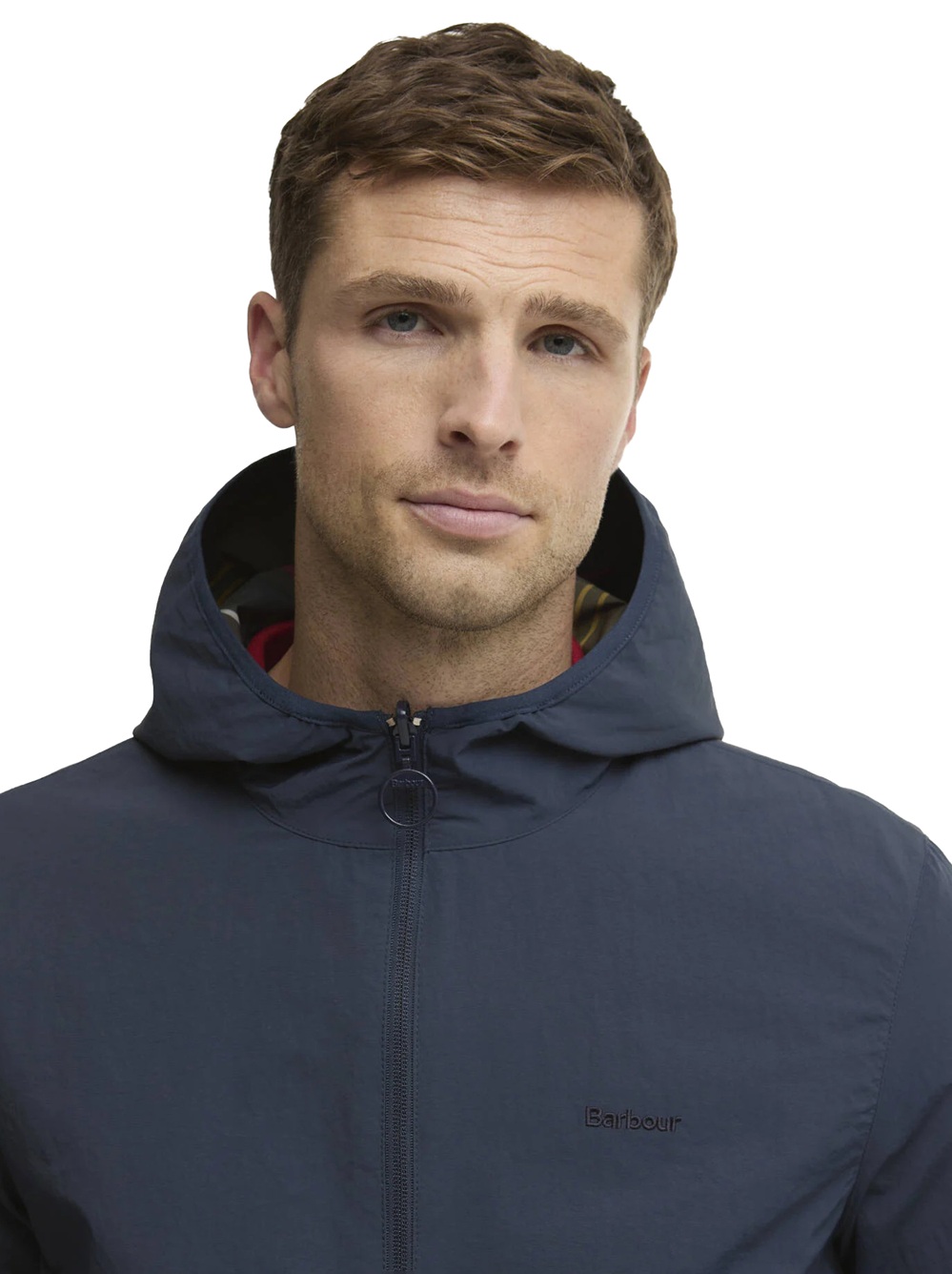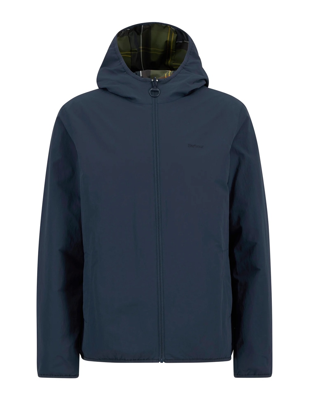 The Barbour Kemble jacket, a true masterpiece of practicality and style. This waterproof hooded jacket offers two looks in one: a plain colour on one side and a bold, large-scale tartan print on the reverse. Lycra trims on the cuffs and hem ensure a snug fit, whilst welt pockets and a discreet embroidered logo on the chest complete the look. This is a versatile outerwear piece offering exceptional practicality.
