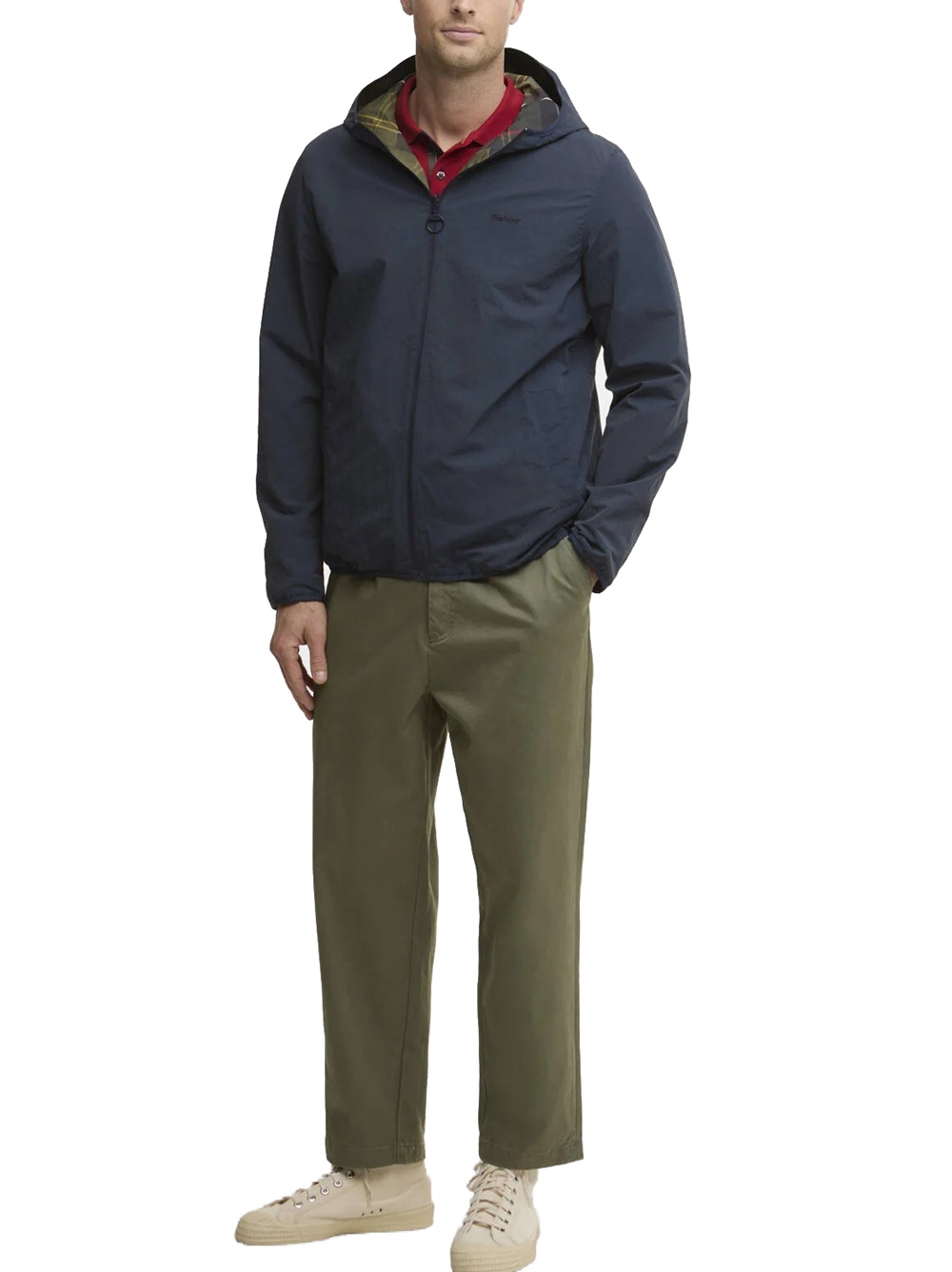 giacca Kemble di Barbour, un vero e proprio capolavoro in termini di praticità e stile. Questo modello impermeabile con cappuccio offre due look in uno: un motivo a tinta unita e un'audace maxi stampa in tartan sul rovescio. Le finiture in lycra su polsini e orlo assicurano una vestibilità aderente, mentre le tasche a filetto e il discreto logo ricamato sul petto completano il look. Si tratta di un capospalla versatile che offre un’eccezionale praticità.