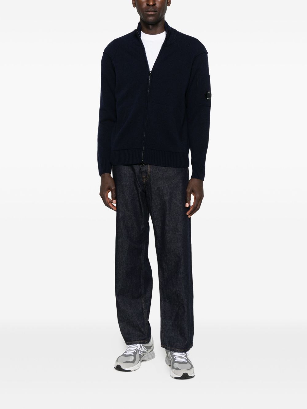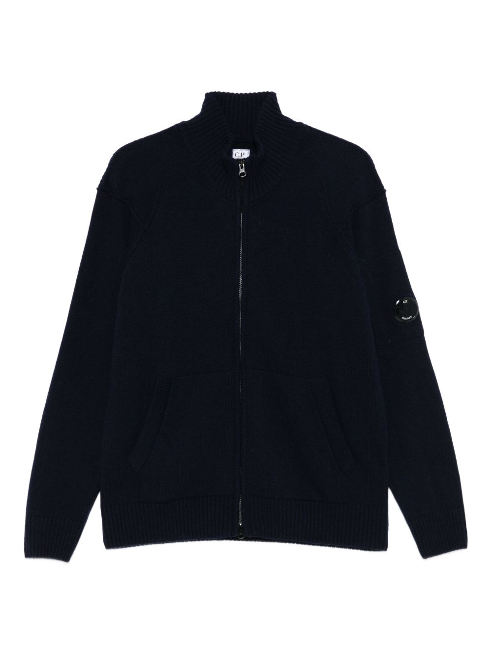 Full zip sweater made from GRS Lambswool. Global Recycled Standard certification guarantees compliance with environmental and social criteria throughout the supply chain. The garment features the iconic C.P. Company lens, contrasting stitching and a kangaroo pocket. Ribbed cuffs and hem complete the design. Gauge 7. Regular fit.