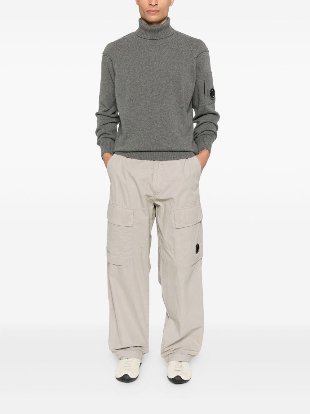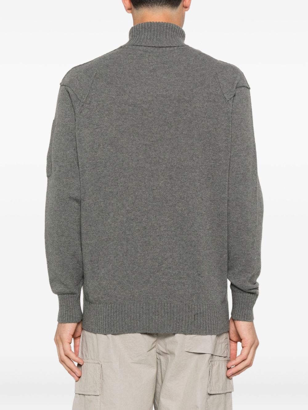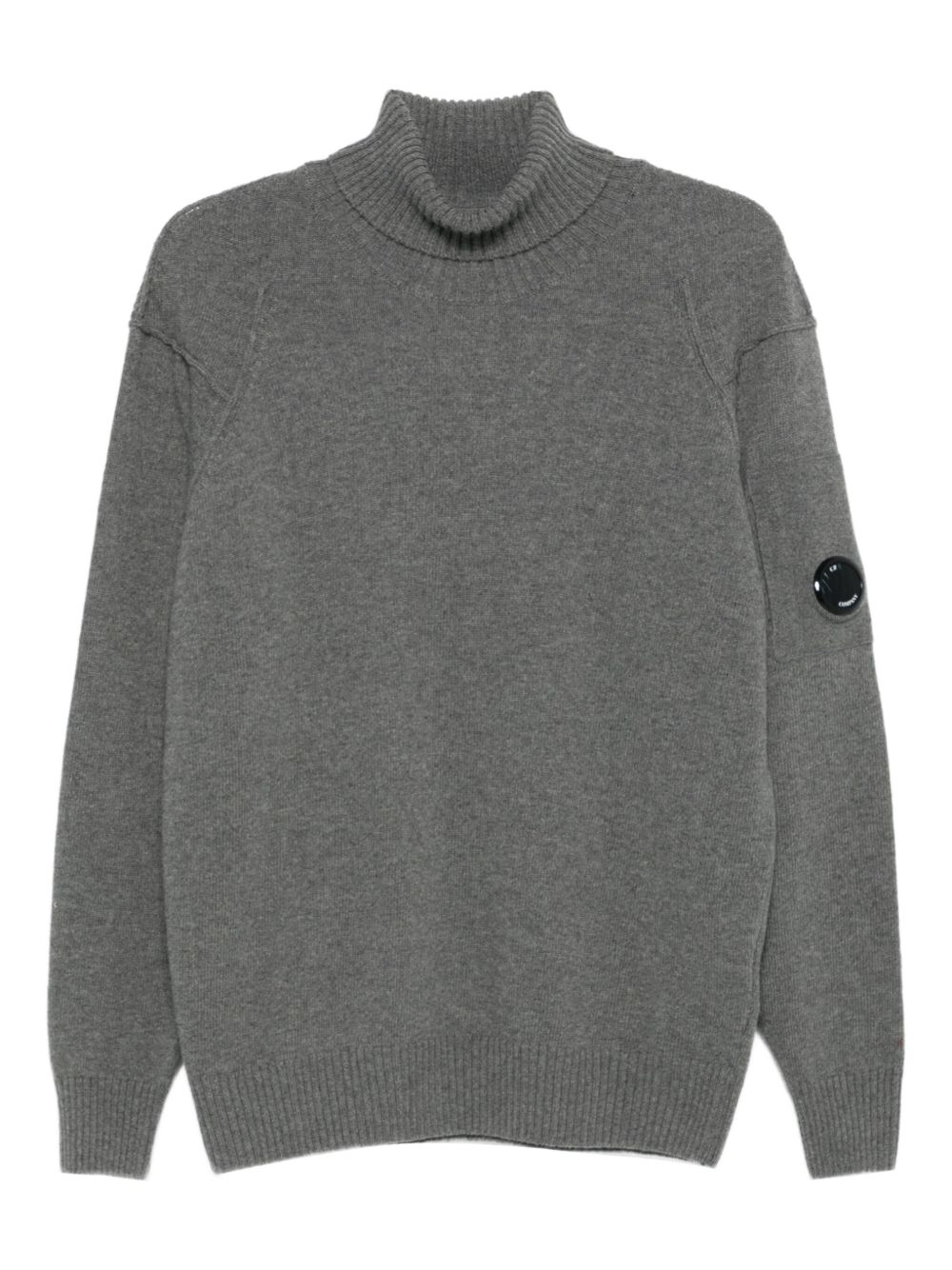 Turtleneck jumper made from GRS* lambswool. Global Recycled Standard certification guarantees compliance with environmental and social criteria throughout the supply chain. The garment features the iconic C.P. Company lens, contrasting stitching and ribbed details. Gauge 7.