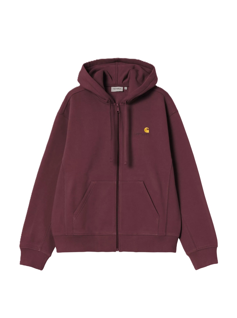 La Hooded American Script Jacket è caratterizzata da vestibilità ampia ed è realizzata in pesante jersey di policotone spazzolato per un effetto felpato. Presenta cappuccio regolabile, chiusura anteriore con zip e tasca divisa a marsupio. Sul petto campeggia il ricamo del logo in due tonalità.