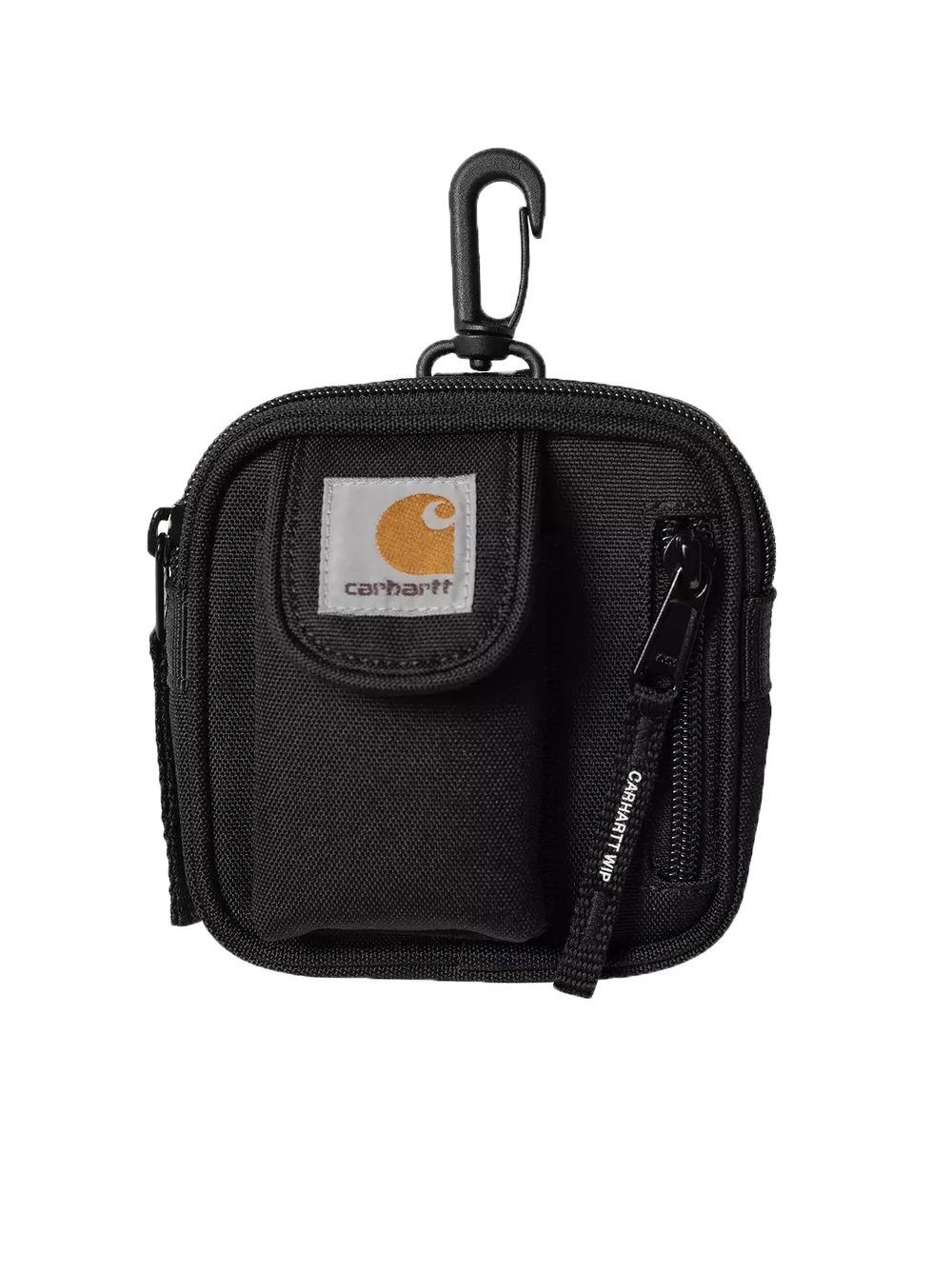 Carhartt Portafogli Black (coll.: P26) - ref: I034924 89.XX essential coin wallet 100% poliestere   L’Essential Coin Wallet è realizzato in tela foderata di poliestere riciclato, dotata di proprietà impermeabili. Il portafogli è dotato di uno scomparto principale con chiusura con zip, nonché di una tasca frontale con zip e di una tasca frontale con patta. Presenta inoltre un portachiavi con moschettone sulla parte superiore. Rifinisce il modello un’etichetta quadrata in tessuto.