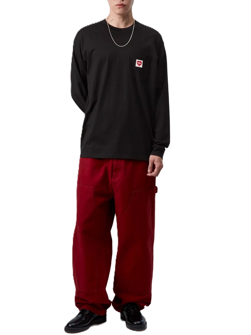 The L/S Pocket Heart T-Shirt is made from lightweight cotton jersey and features a relaxed fit. It has a heart-shaped label on the chest pocket.