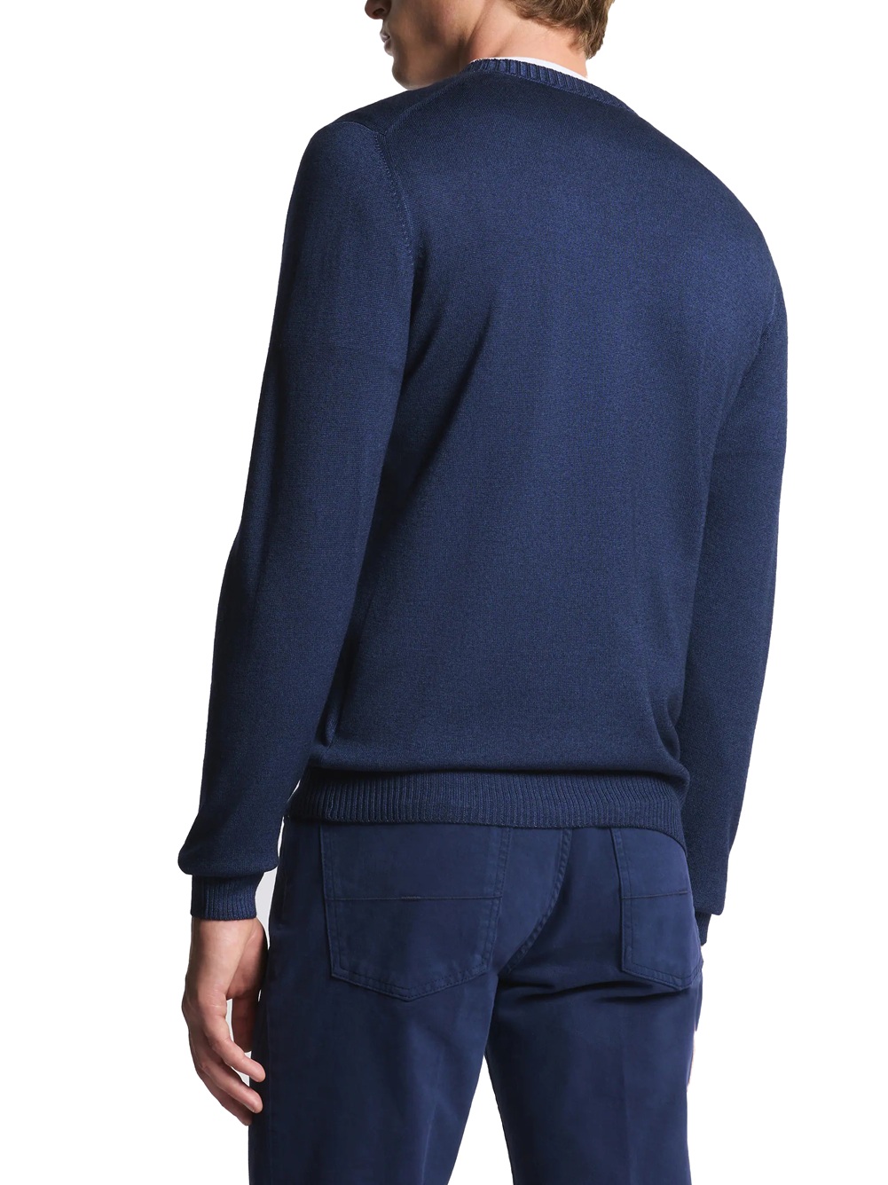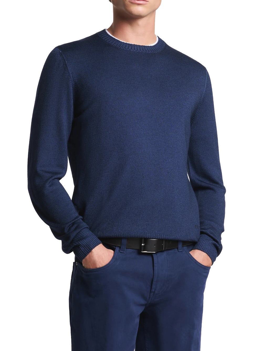 Garment-dyed crew neck jumper in smooth wool knit. Featuring slightly contrasting cuffs and collar, it is embellished with the Fay logo embroidered on the hem.