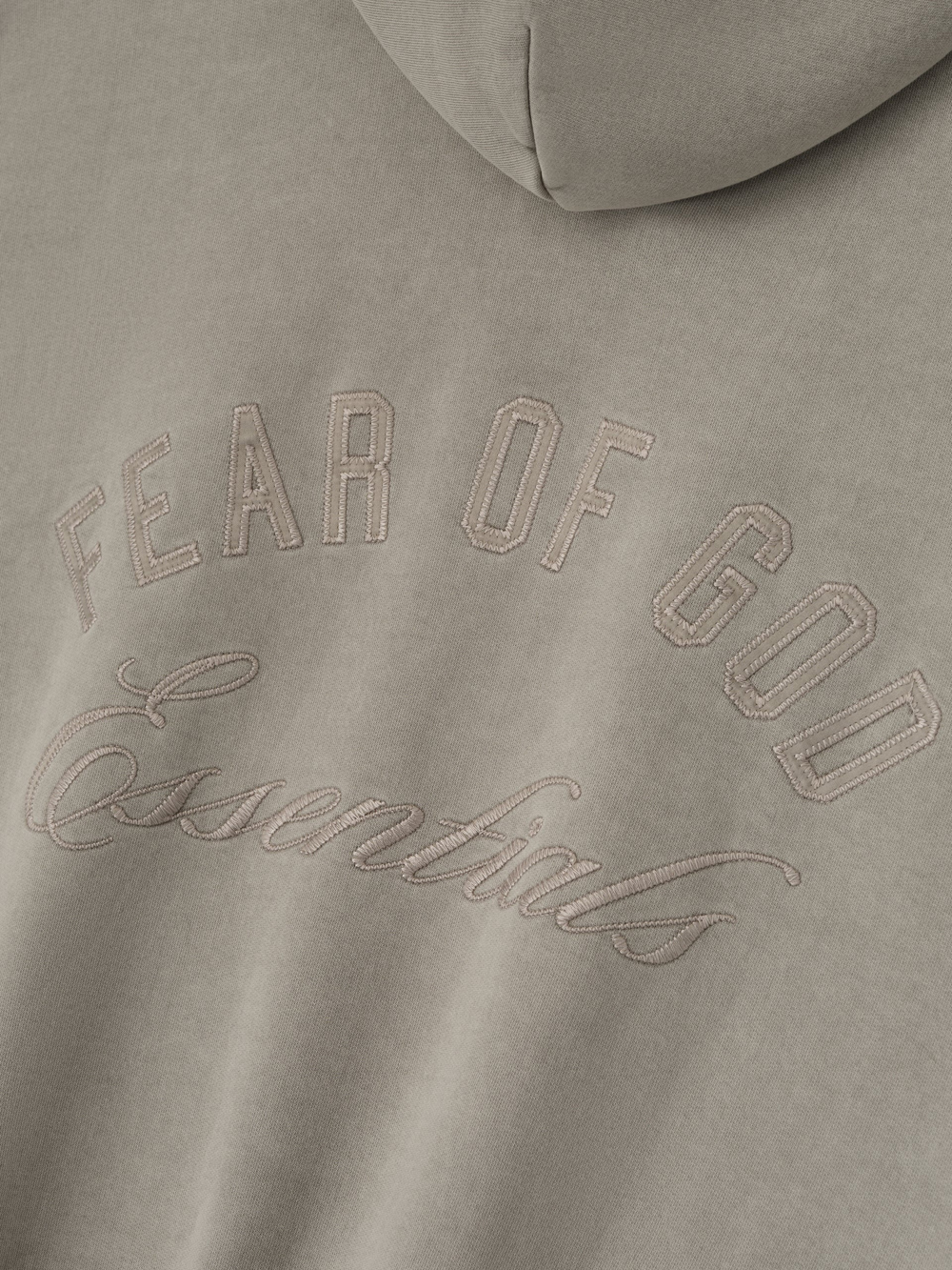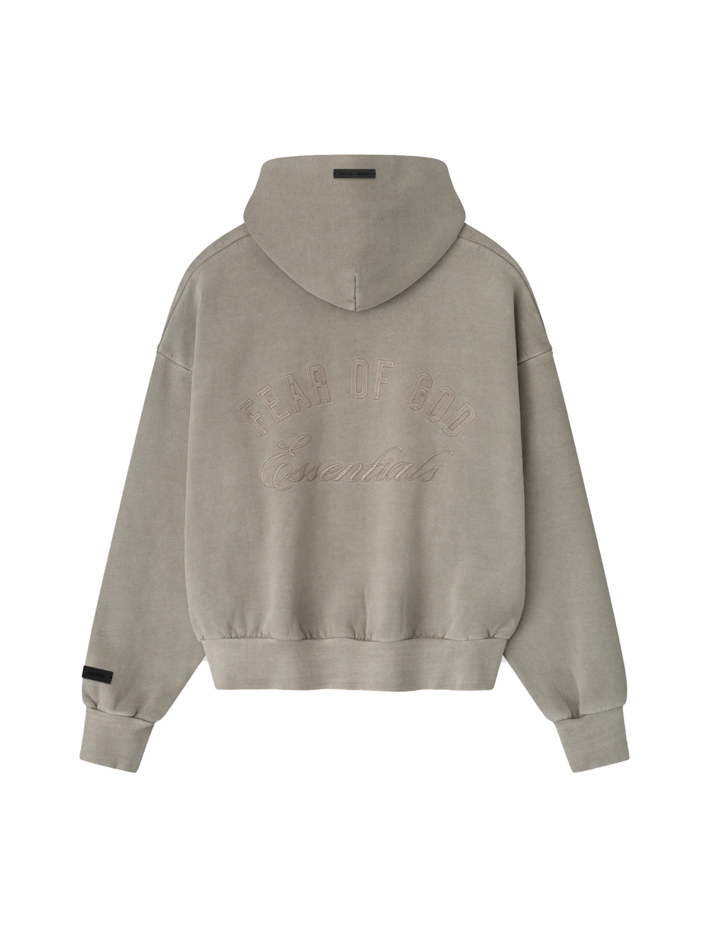 The Classic Fleece Full Zip Hoodie is crafted from 520gsm heavy fleece and treated with a pigment dye to create rich depth of color. Its classic silhouette is defined by an embroidered Fear of God Essentials logo on the back. Details include side pockets, rib-knit cuffs, and waist-hem. A Fear of God Essentials rubberized label stitched at the back collar.