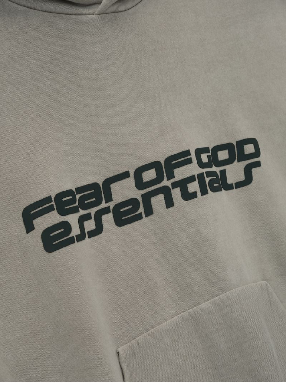 The Heavy Fleece Hoodie is crafted from 520gsm heavy fleece and treated with a pigment dye to create rich depth of color. Designed in an oversized 90s-inspired silhouette, it features exaggerated proportions with dropped shoulders for a relaxed drape. The hoodie is defined by HD-printed graphics—“Fear of God Essentials” logo on the front and “26” on the back. Finishing details include a kangaroo pocket, rib-knit cuffs, waist-hem and a Fear of God Essentials rubberized label stitched on the hood.