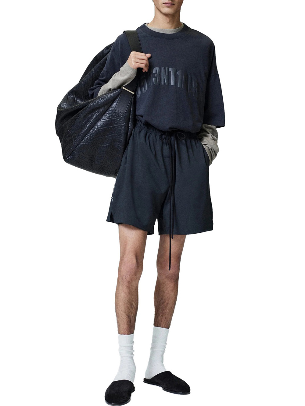 The City Exclusive Los Angeles 90s Tee is cut from 100% cotton jersey, offering a soft yet substantial hand feel. Designed in an oversized 90s-inspired silhouette, it features exaggerated proportions with dropped shoulders for a relaxed drape. The front is defined by a puff-print application of the alpha-numeric Essentials logo "3553NT1AL5", and on the back "L05 ANG63L35" graphic. The signature rubberized Fear of God Essentials label at the collar.