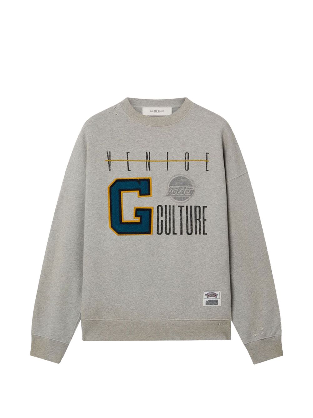 GOLDEN GOOSE FELPA Alluminium melange gray (coll.: P26) - ref: GUP02175P002409 60513 journey unisex over cotton heavy fleece ribbed side vintage treatment with print and patch 100% cotone Golden Goose