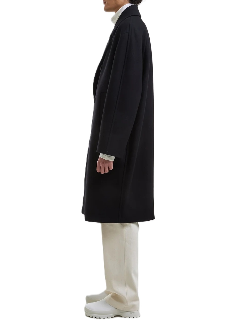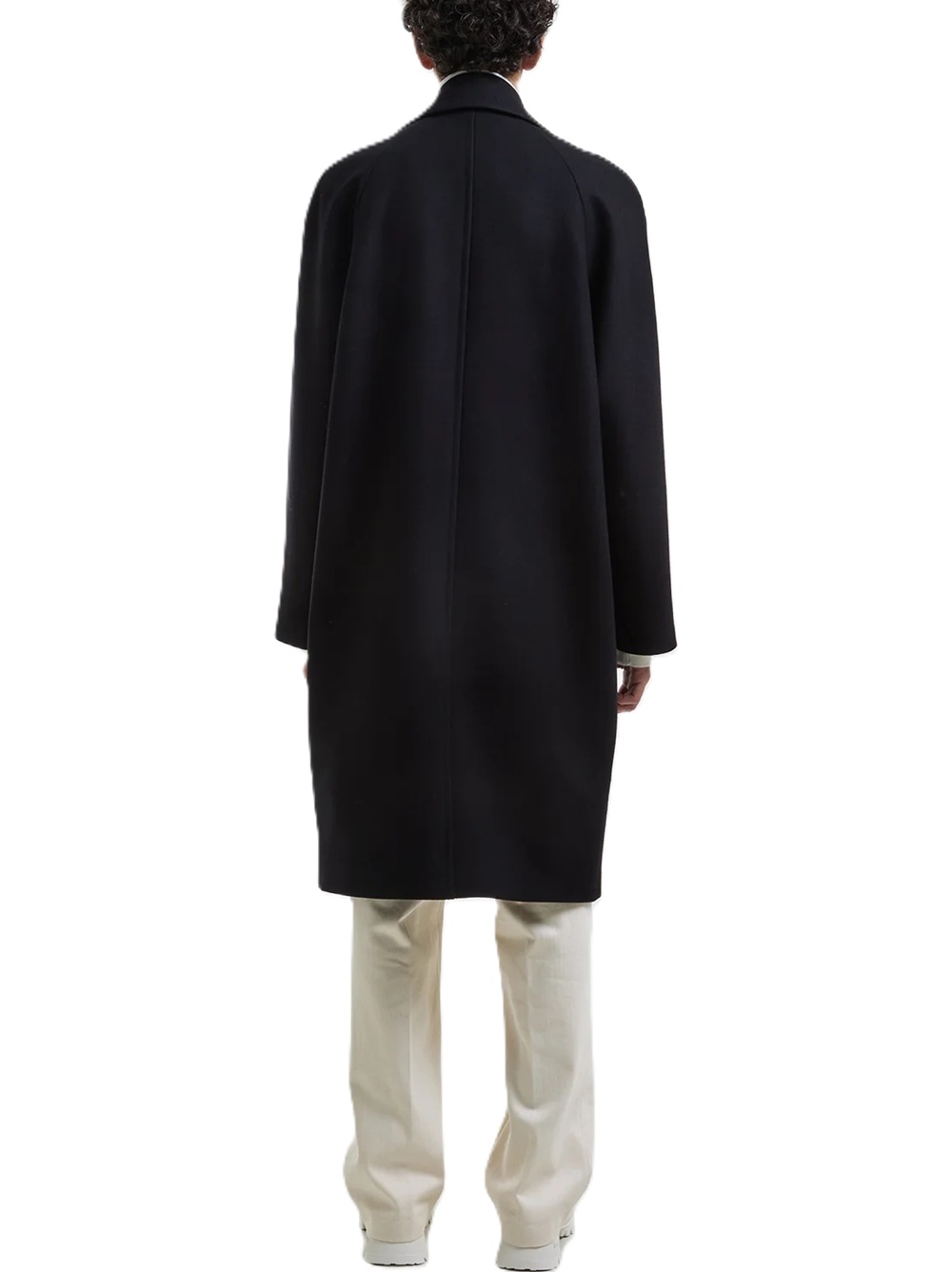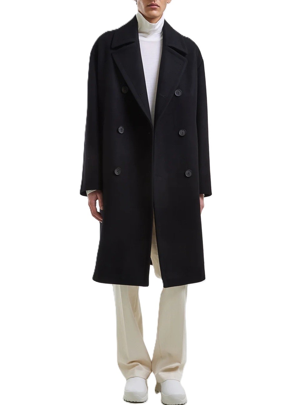 Shipping is free throughout Italy for orders equal to or greater than €150.00. In Europe and surrounding areas above €300.00. Delivery usually takes place within 1-3 working days after your order in Italy and 2-4 days in Europe with the exception of special areas or courier delays not attributable to “IL FARO”.You can track the shipment and reschedule it for your convenience by contacting us either via email or via chat on the website. You can return your order within 14 days of delivery. The instructions for the return method will be present inside the shipment. For further information click here.   Double-breasted coat made of felt with 100% polyester lining, featuring wide lapels, drop sleeves at the front, and raglan sleeves at the back. Welt pockets at the waist lined with 100% cotton. Relaxed fit.