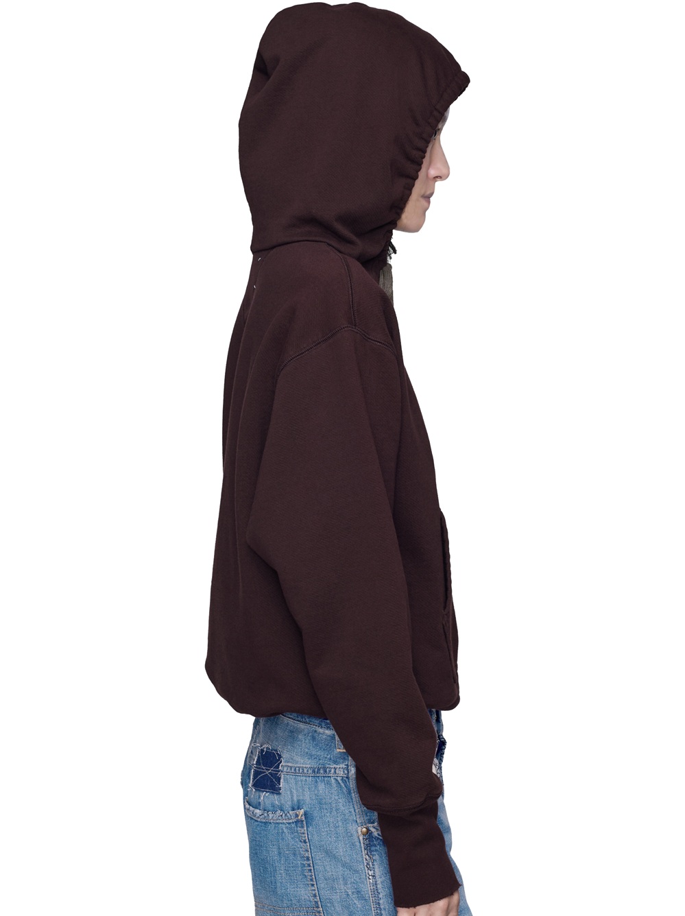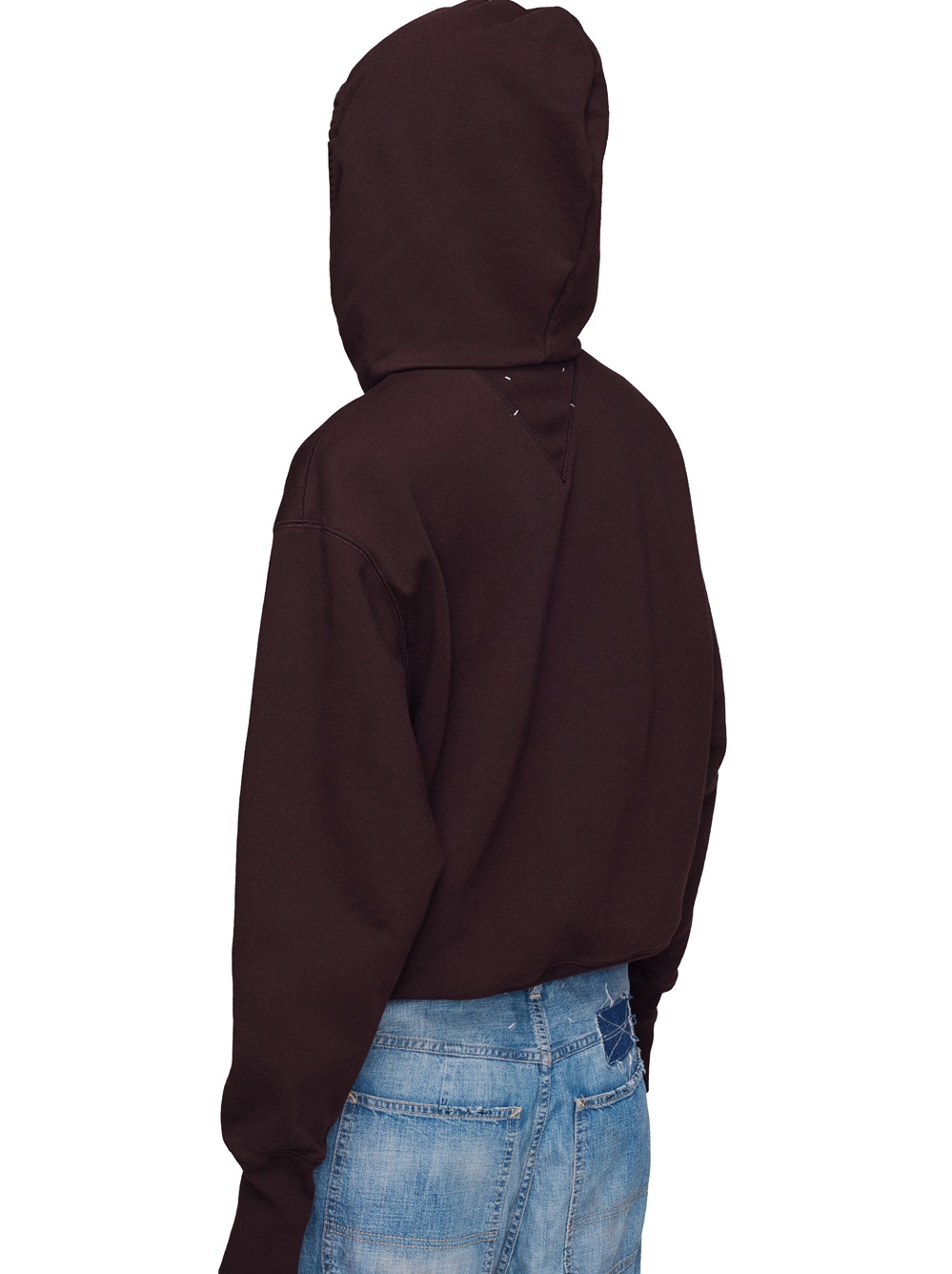 Felpa in jersey di cotone con cappuccio, tasca a marsupio sul davanti e cordoncini lunghi. Le finiture a costine sottolineano il taglio morbido, creando un capo che unisce comfort e sobria precisione. Sul retro spiccano i Four stitches, firma iconica della Maison: l’opposto di un’etichetta.