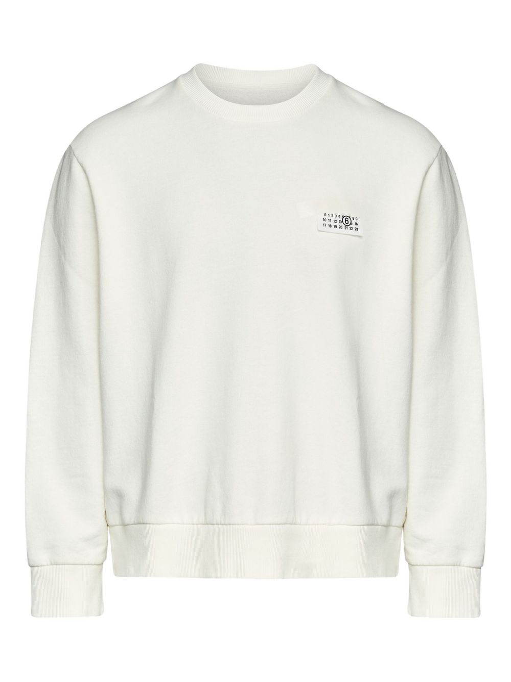 MM6 FELPA  BIANCO - WHITE (coll.: A25) - ref: SH2GU0025 M25024 101 100% COTONE MODELLO CM188 - TAGLIA/SIZE: L Felpa girocollo in cotone. Collo, orlo e polsini a costine. Patch con logo numerico serigrafato e dettaglio nastro. Cucitura bianca sul retro.