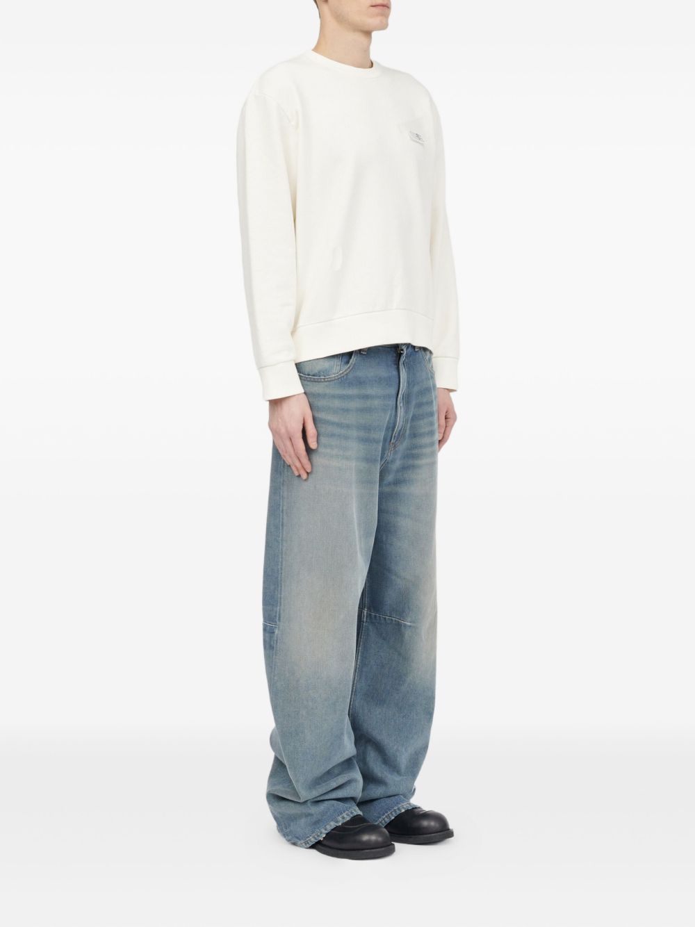 MM6 FELPA BIANCO – WHITE (coll.: A25) – ref: SH2GU0025 M25024 899 100% COTONE MODELLO CM188 – TAGLIA/SIZE: L Felpa girocollo in cotone. Collo, orlo e polsini a costine. Patch con logo numerico serigrafato e dettaglio nastro. Cucitura bianca sul retro.