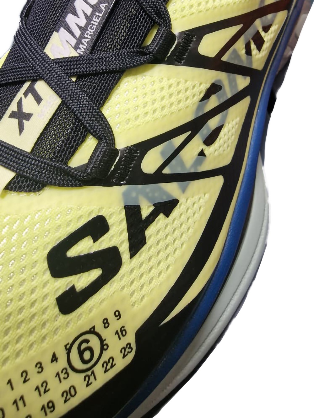 Le sneakers MM6 x Salomon XT si presentano come ispirazione anni ’80, con una struttura tecnica contrapposta a contrasti tonali e una suola scolpita. Il mesh leggero presenta delle sovrapposizioni angolari che sottolineano l’identità ibrida della scarpa tra funzionalità sportiva e stile urbano. Sul lato, la grafica numerica MM6 impone la sua firma.