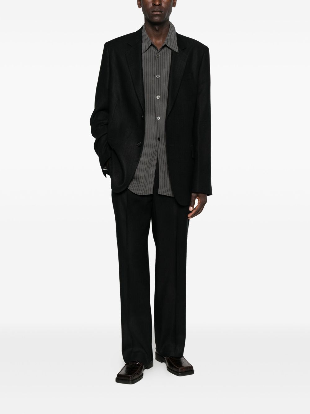 Beyond shirt in Iron Stripe Ceremony viscose. Made from Italian viscose and polyamide fabric, it has a regular, straight fit and features contrasting stripes, mother-of-pearl buttons and a rounded hem.