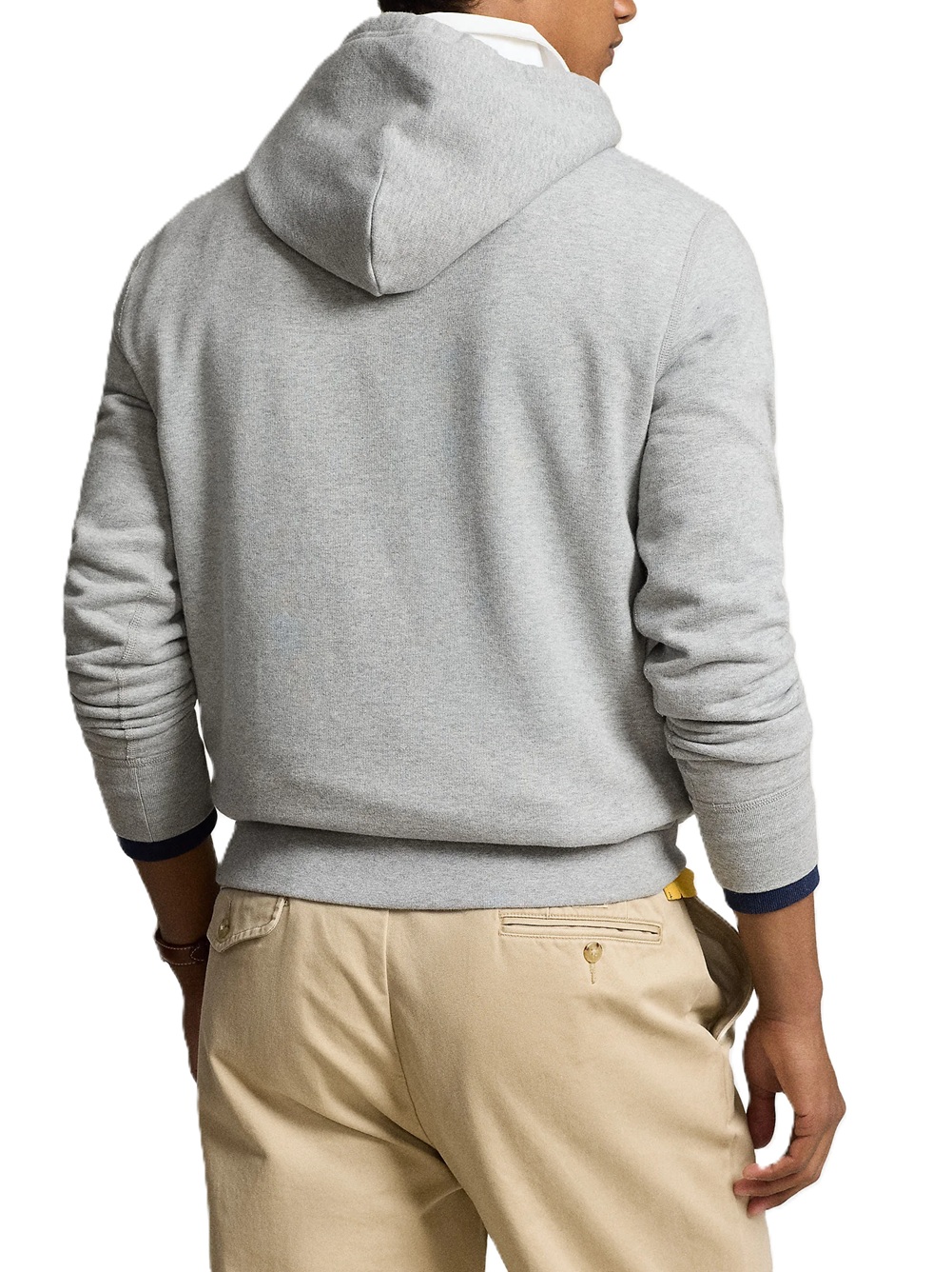 POLO RALPH LAUREN FELPA GRIGIO Andover heather (coll.: A25) - ref: 710766778 006 sweatshirt  60% cotone, 40% poliestere. Il modello è alto 185 cm e indossa la taglia M. Felpa in misto cotone con cappuccio. Perfetta da abbinare a un paio di pantaloni da jogging, di jeans o di short. Cappuccio con coulisse e inserto a V a coste. Maniche lunghe con polsini a coste. Tasca a marsupio. Orlo a coste. Esclusivo pony ricamato sul lato sinistro del torace. Cotton blend hoodie. Perfect for pairing with jogging pants, jeans, or shorts. Hood with drawstring and ribbed V-shaped insert. Long sleeves with ribbed cuffs. Kangaroo pocket. Ribbed hem. Exclusive embroidered pony on the left side of the chest.