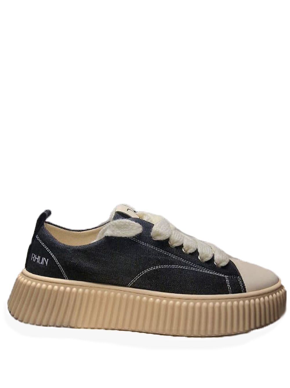 RHUN Sneakers basse realizzate in Canvas nera con cuciture bianche. Gambetto con sei passanti passanti e lacci spessi. Dotate di logo in rilievo sulla linguetta e sul tallone. Suola voluminosa in gomma beige e design con righe in rilievo