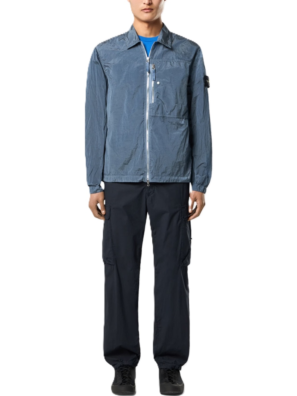 Nylon Metal overshirt made from ECONYL® regenerated yarns. It features a large chest pocket with a zip and press studs, adjustable cuffs and a two-way zip fastening. Piece-dyed.